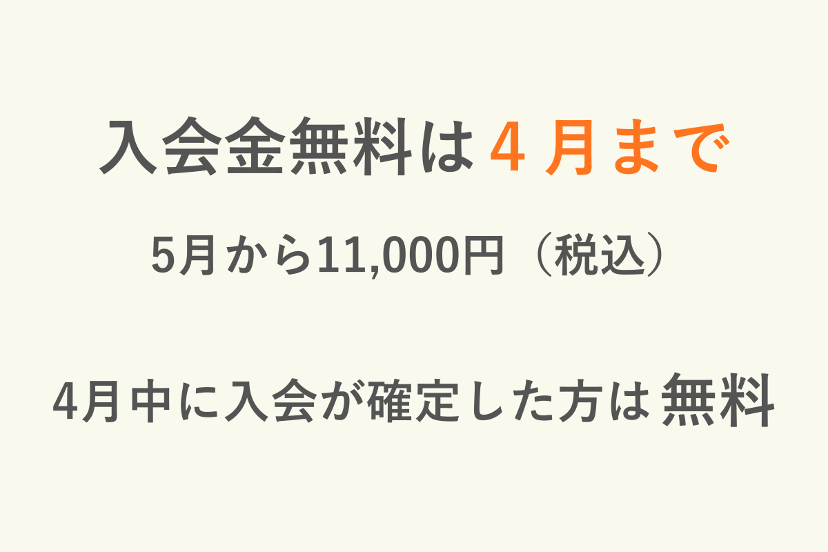 4月中に入会が確定した方は無料となります。